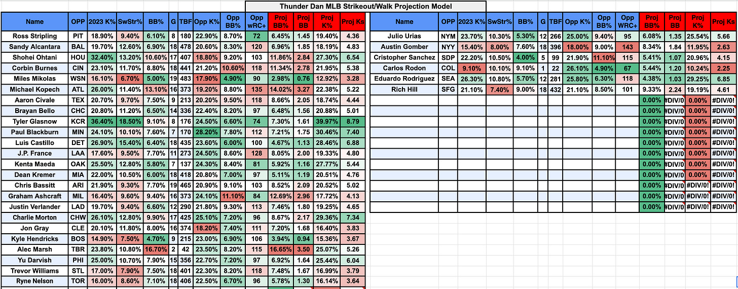A huge Friday slate, so I am going to have a full card for you today and K projections, which I had to do multiple times since I started a day early and then saw several teams change who they were pitching tonight - grrr!