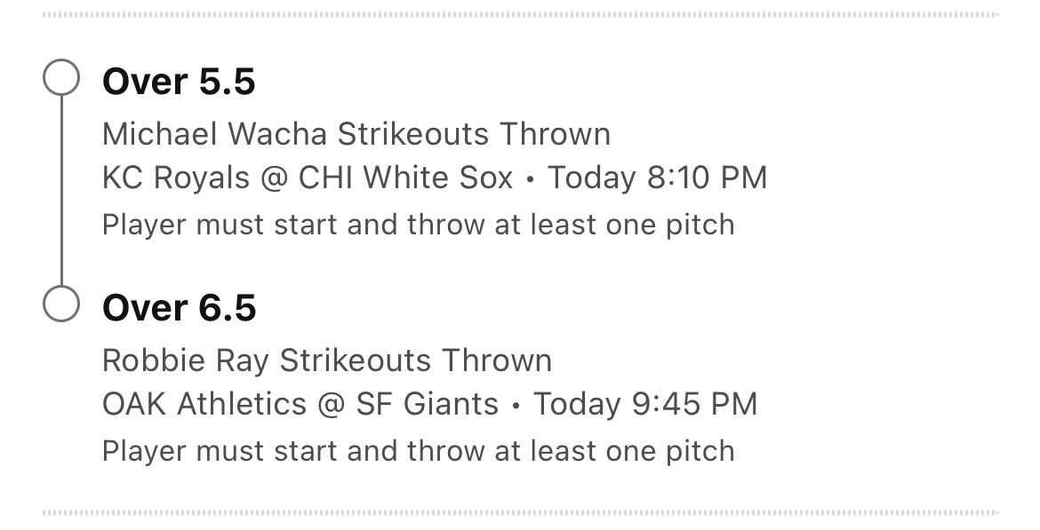 The odds on these didn’t show up in my screenshot, but Wacha is still plus mon…