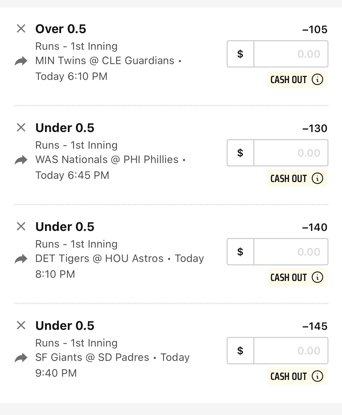 NRFI bets got their own article today at RotoBaller, you can read all about them HERE.