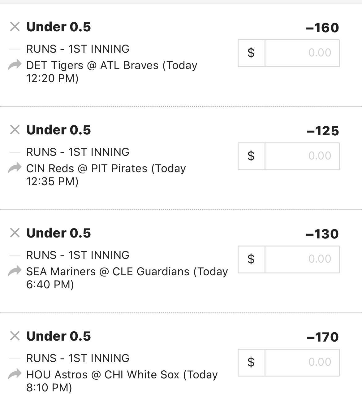 UGH, the games already started today - so I posted all the bets in the Chat. The good news is we hit the first two NRFI bets, the bad news would be that Kyle Gibson was scratched (it’s a refund, not a loss), and if you didn’t see the early bets you missed on the NRFIs and Rey Lopez who is mowing down the Tigers.
