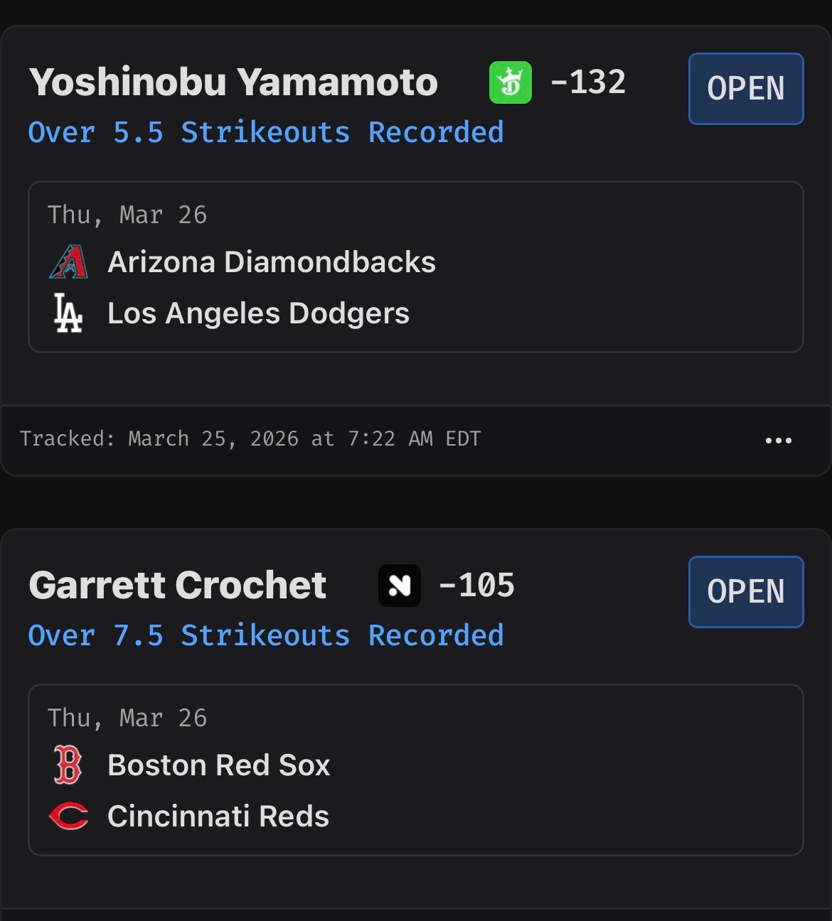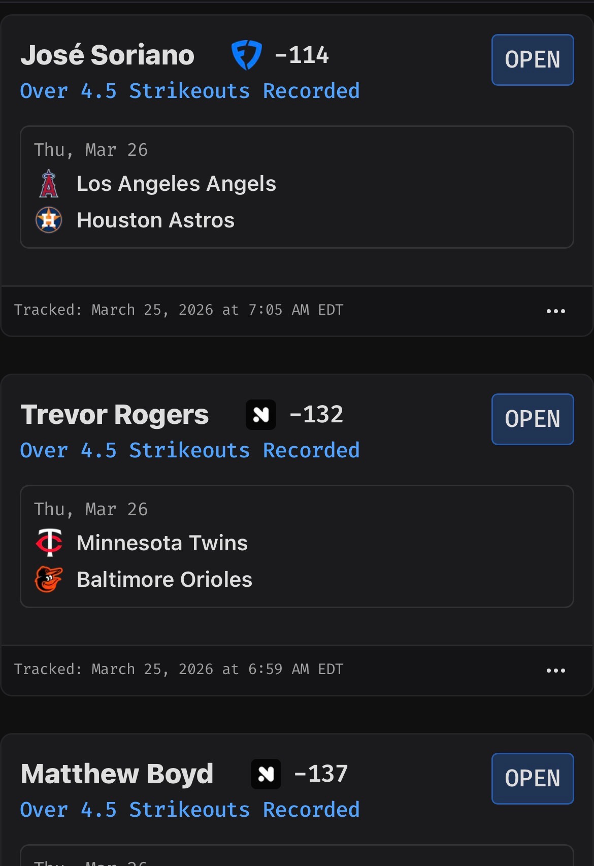 No ML or run line bets for Thursday, we will likely be slow to get those integrated and wait for more 2026 data.