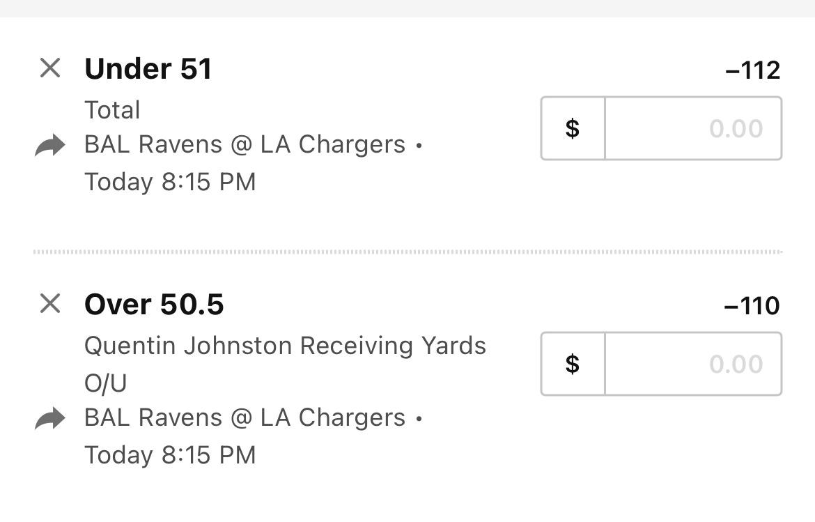 We have a huge game tonight for the AFC playoff picture between the Chargers and Ravens, and while I’m not picking a side I do have a play on the total.