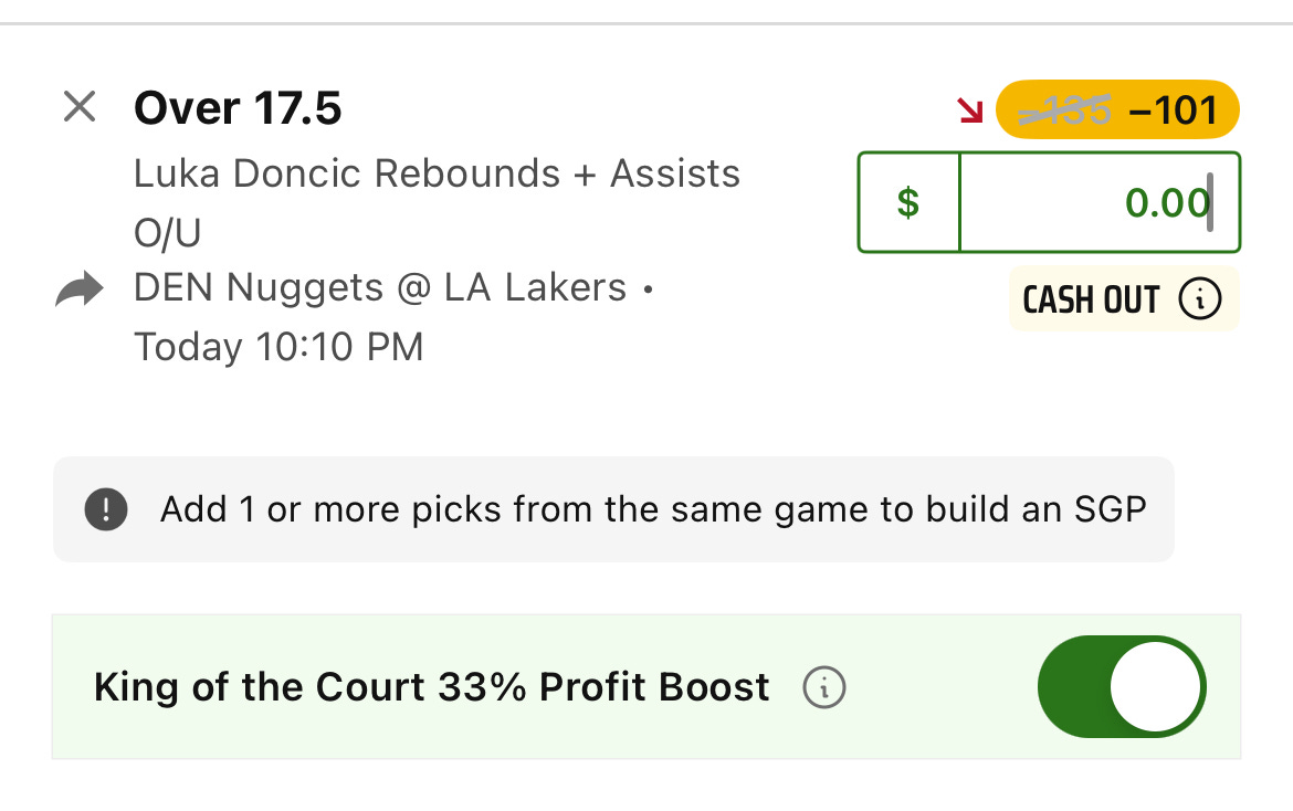 For those who play the DK “King of the Court,” I am betting on Luka tonight to try to get a split of that million-dollar pot.