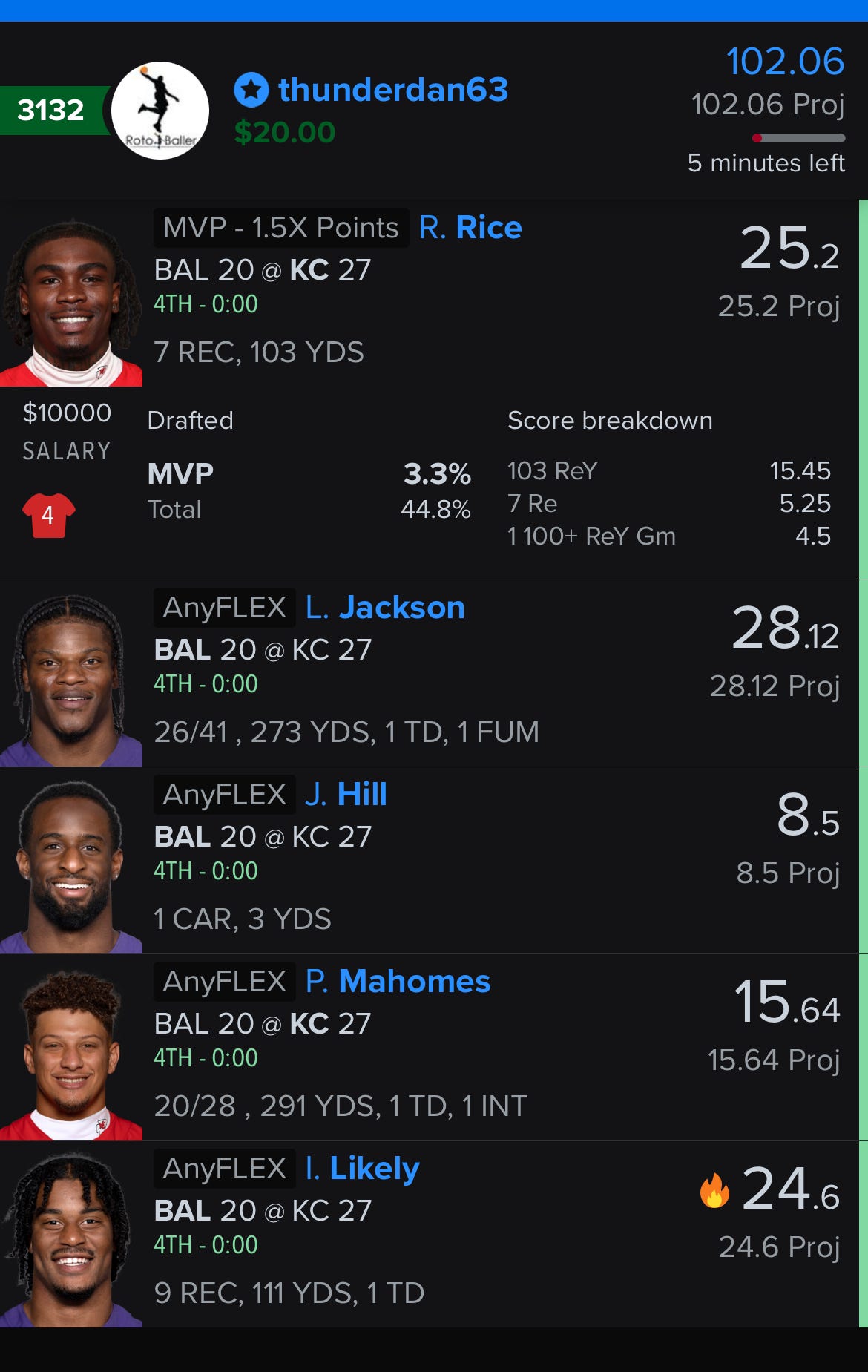 I used my risk-free bet on FanDuel on Rice’s alt receiving yards at 70 and that baby hit, too. Building around Lamar + Rice + Likely in DFS was quite profitable, too.