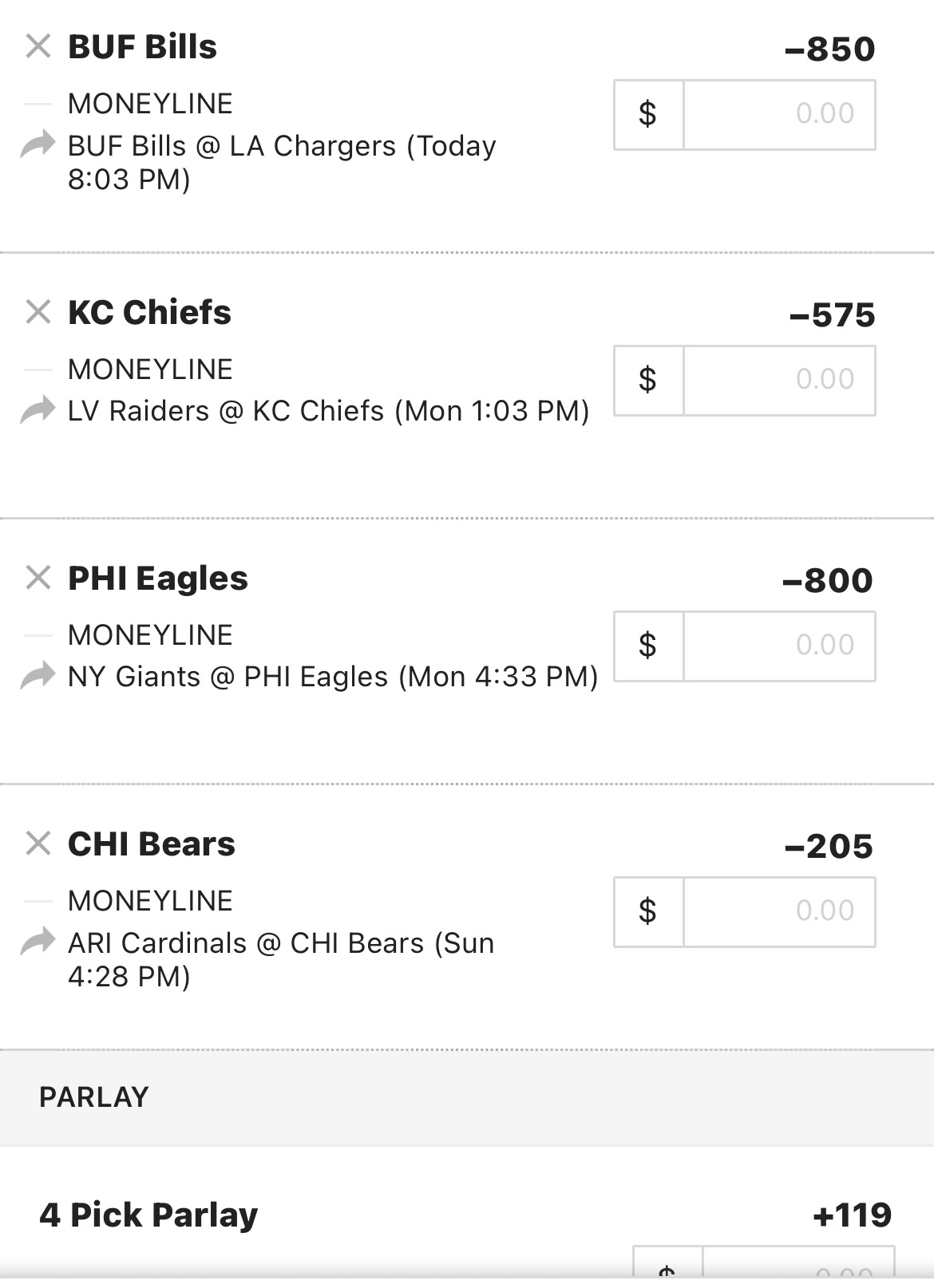NFL Bets (ML, Spread, Totals)