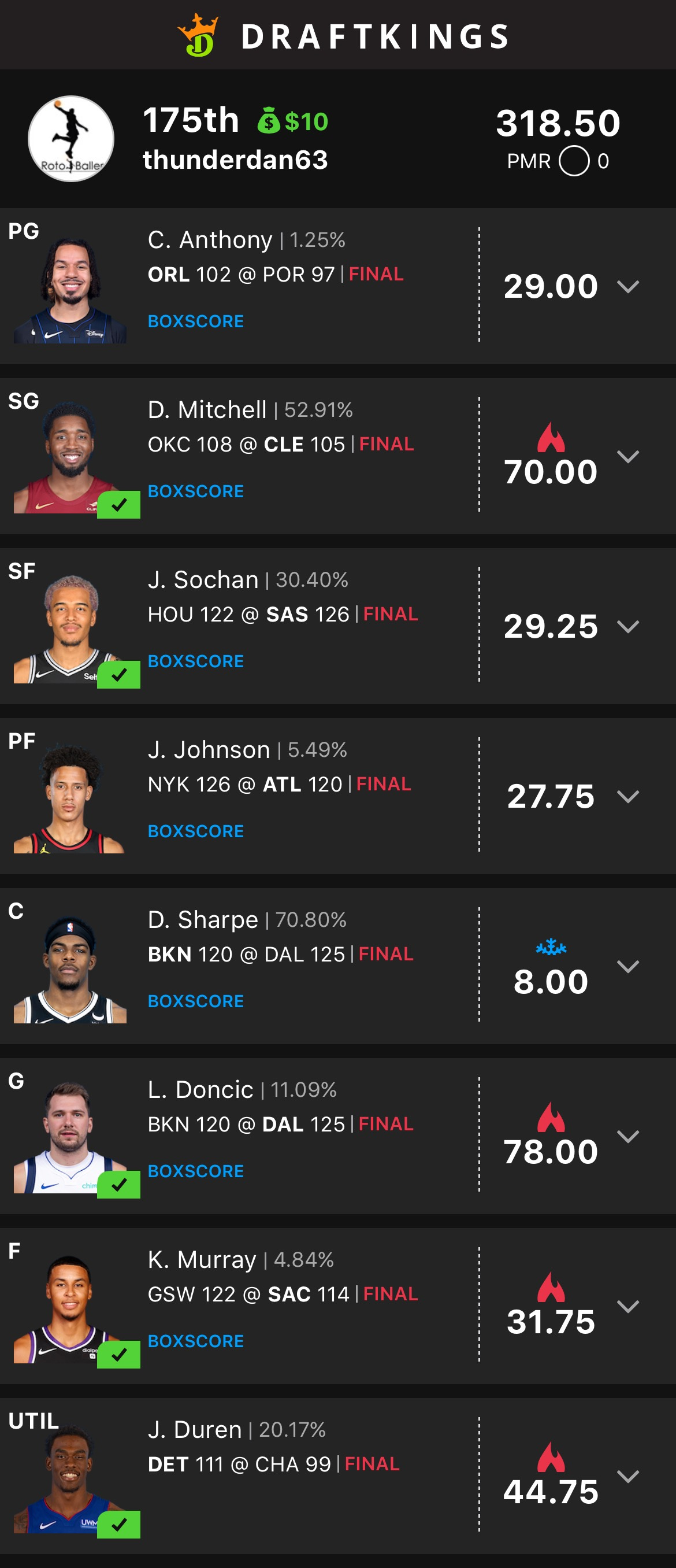 I am playing DK cash tonight, so I will post my final lineup sometime around 5-6 PM tonight in the Substack Chat - check there if you are playing NBA DFS on DK today, it’s a pretty solid 7-game slate.