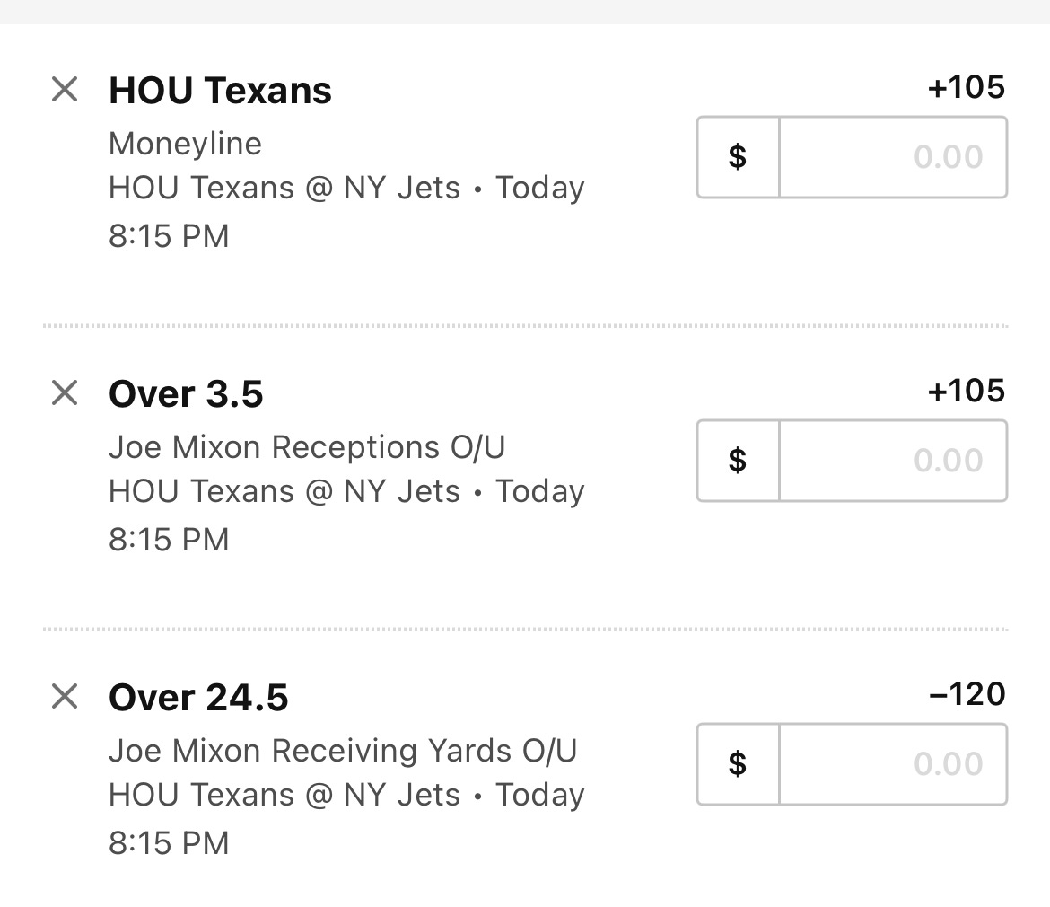 The line has started moving back towards Houston, but they are still officially underdogs at this moment and I can’t pass up the opportunity to bet against the Jets.